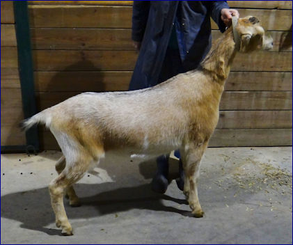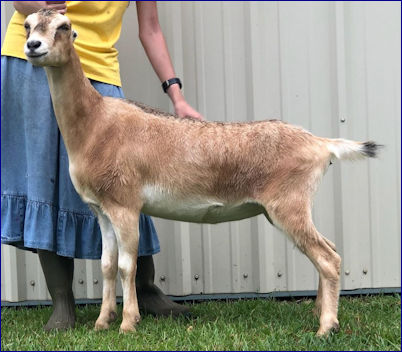 Bliss was our only doe bred to Mud in 2019, and when Blithe was born, we just knew she had to stay. Blithe herself looks very much like her dam, but her sire's influence is still apparent. Perhaps not our largest doe this year, she makes up for it in correctness and balance. Long and refined while still maintaining great strength of bone, she has an excellent shoulder assembly and very good feet. While she only got out to one show this year, she still took a solid second place behind her herd mate Willow. This girl's time to shine is yet to come, and I am excited to get her out to more shows.